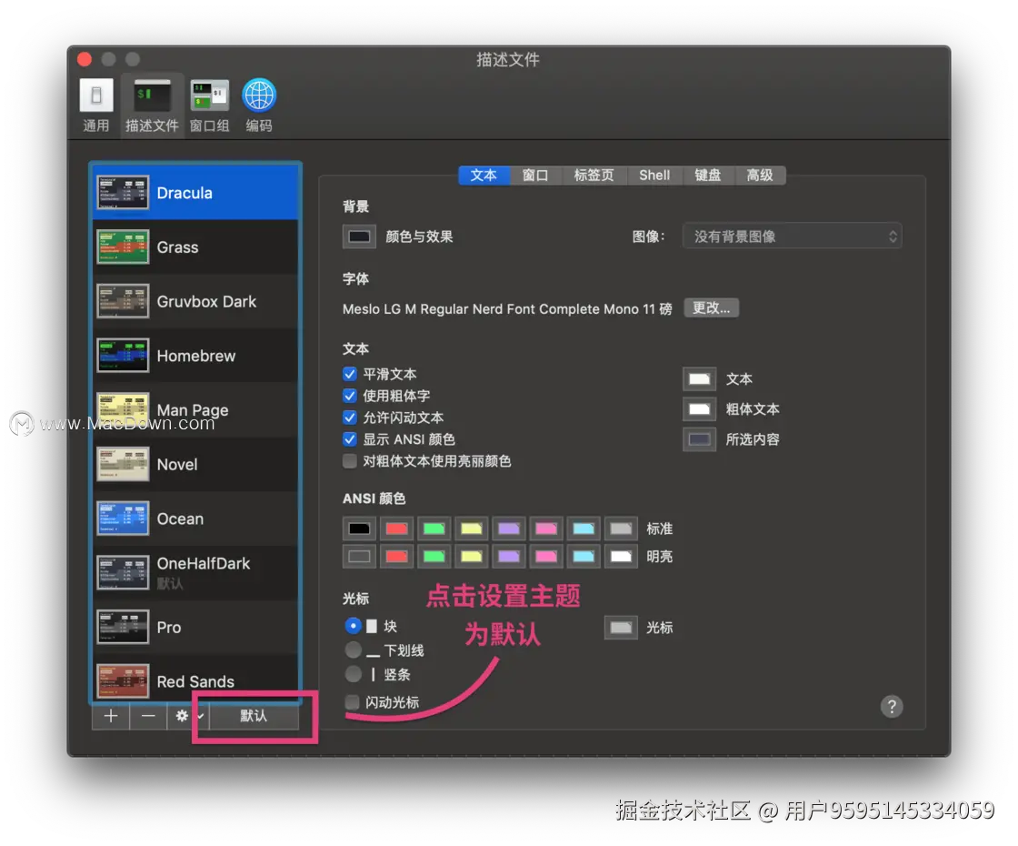 主题库中提供了 Dracula 主题的配置文件 Dracula.terminal,可以直接应用。