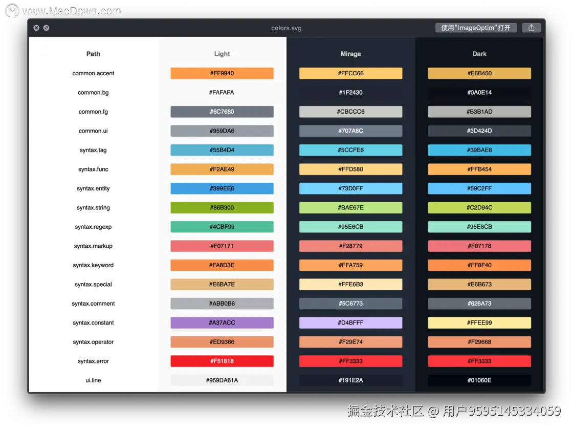 Ayu 系列配色主题也是我个人比较偏好的主题,这个配色方案有三种不同的色调:暗色、亮色和相对暗色比较亮的 Mirage 色调。Ayu 配色的整体感觉比较暖,让人看起来很舒服,视觉效果相当不错。