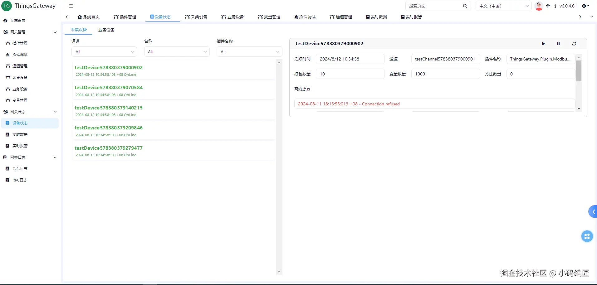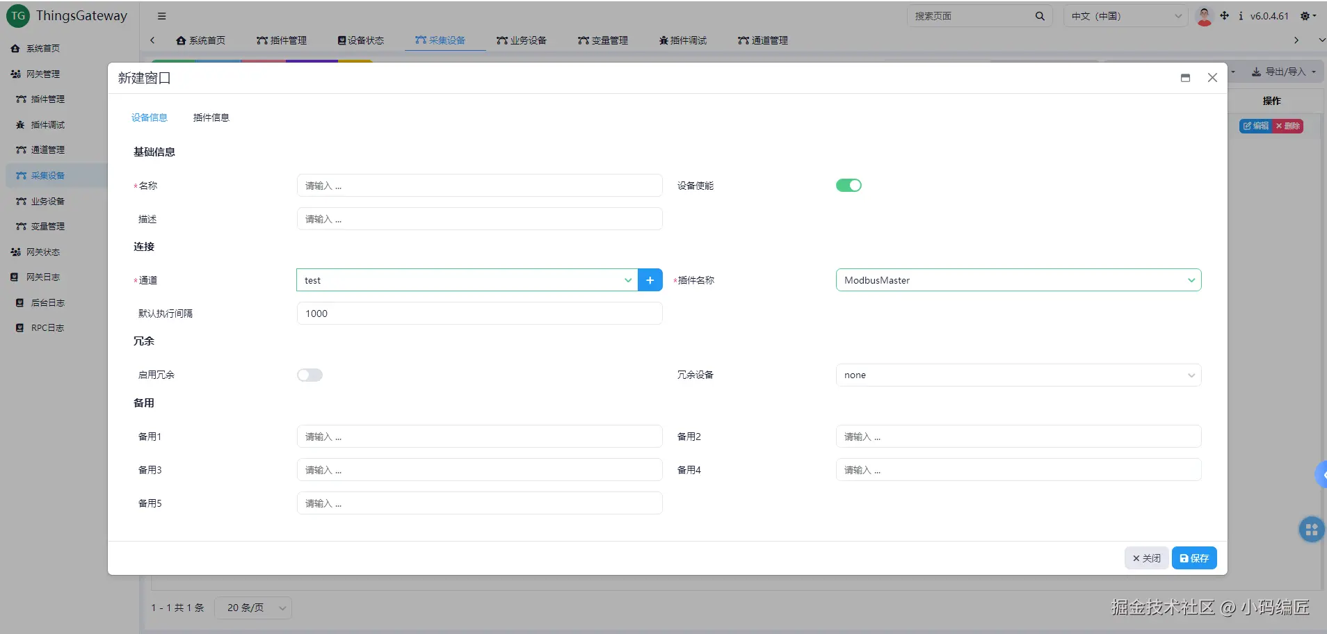 建立设备,必须指定通道以及插件,也可以说设备其实是插件的配置。 同时对于采集设备、业务设备,会有些许差别。