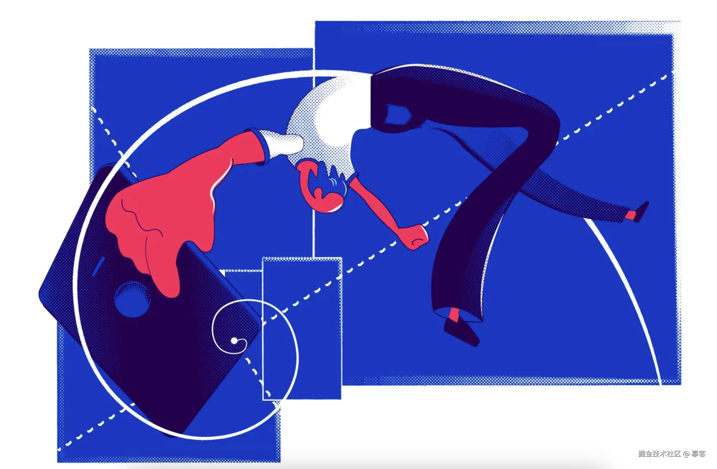 插画设计主要目的是吸引用户眼球,在有视觉冲击力的同时还讲究画面结构,下面这张插图充分应用了黄金螺旋。