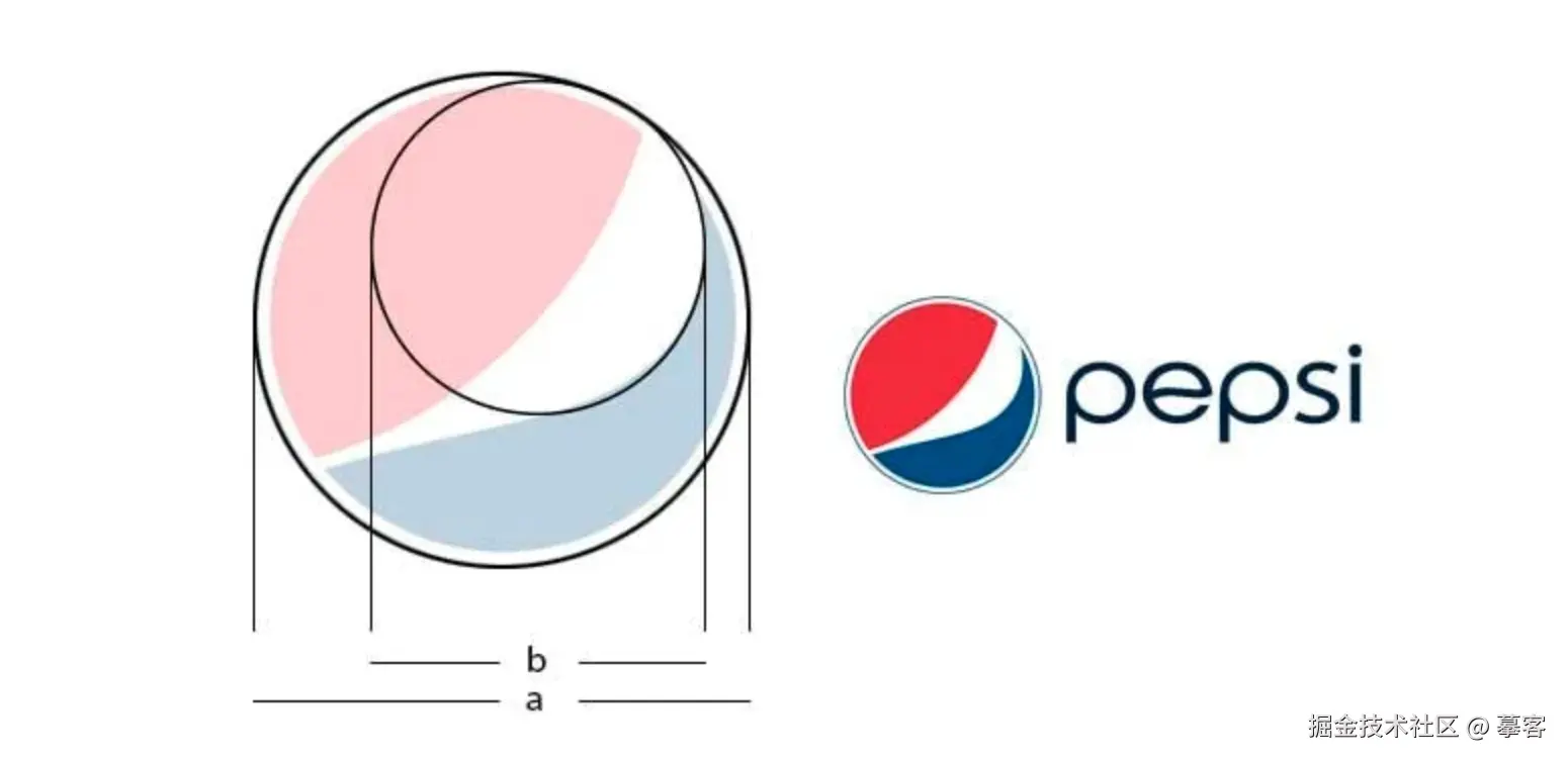 - 百事可乐的标志基于两个相交的圆圈,符合黄金比例,使用黄金比例不仅可以和谐换,还创造了画面的一致性。