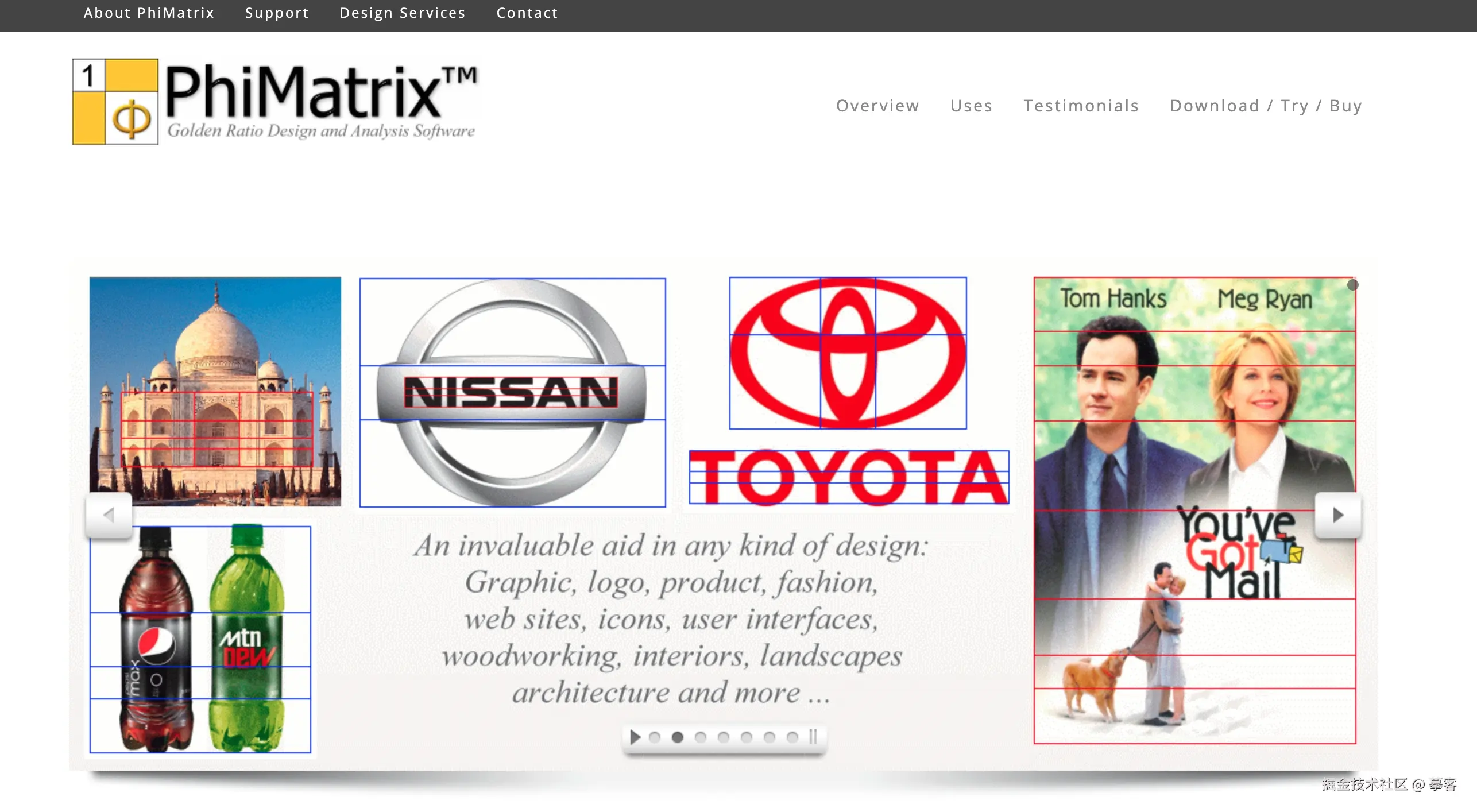 PhiMatrix(PhiMatrix.com) 是一款专门用于黄金比例设计的软件,可以在任何应用程序上覆盖网格,使设计师能够在绘制图形时轻松应用黄金比例。