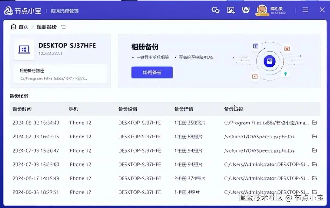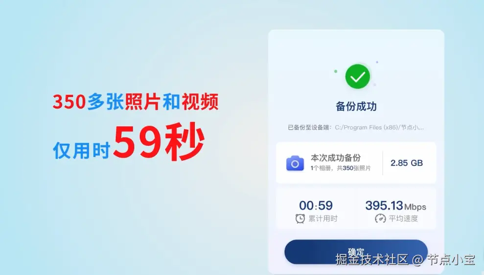 - 点击“一键备份”按钮,节点小宝将开始自动将选中的相册文件备份到目标位置。