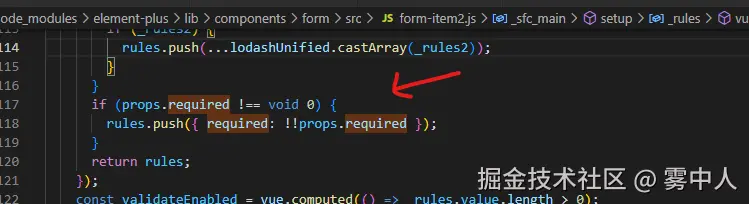 至于为什么说required值为null也算,我们看下element-plus的源码