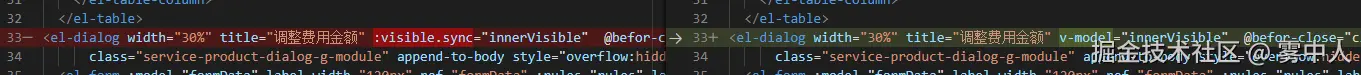 将它上面的“:visible.sync”改写成“v-model”,