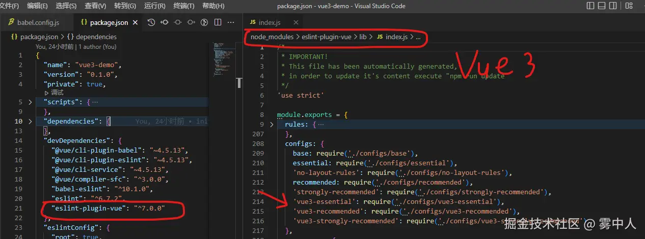 同样这里仅作参考,如果你项目用了别的eslint依赖,升级成适配vue3的就行了