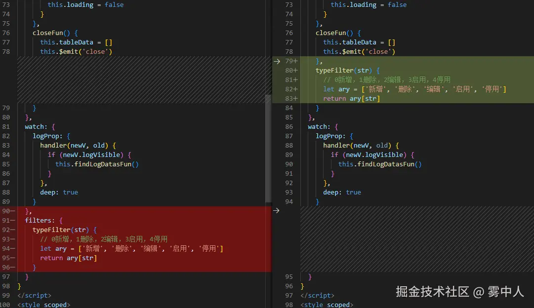 然后再将filters选项中的局部过滤器移动到methods中,并删掉filters选项