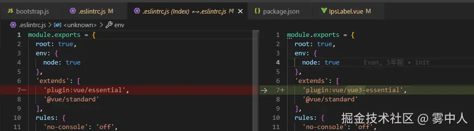 这里我们将.eslintrc.js文件中的 “plugin:vue/essential” 替换为 “plugin:vue/vue3-essential”
