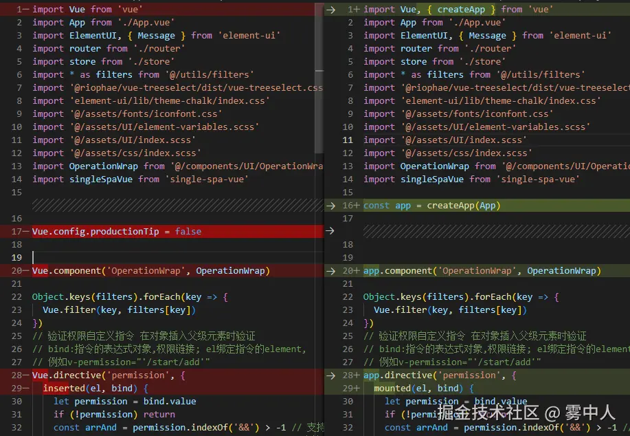 总结:1.依赖升级兼容 2.vue 全局更改:{ 路由,new Router=>createRouter 全局注册 new Vue=>createApp 3.vue3 与vue2写法区别 生命周期写法 多根组件 组合式api 移除全局熟悉$on,过滤器