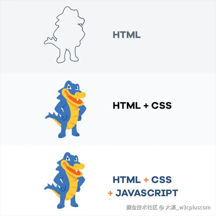 前端开发者都清楚,一个Web页面或应用程序会由HTML、CSS和JavaScript构成: