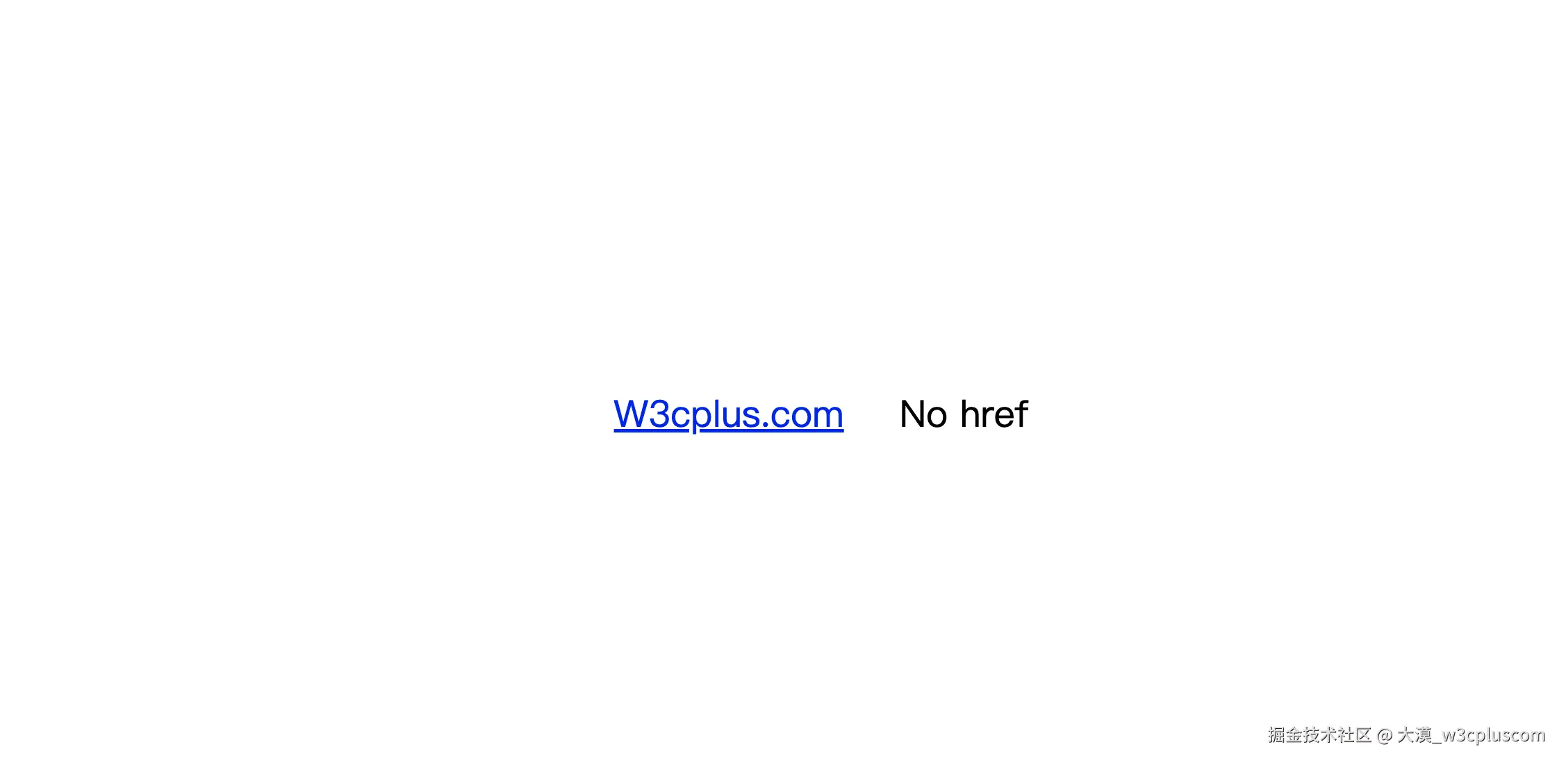 示例中的第二个<a>标签,没有显式设置href属性,原本<a>默认的样式也丢失了,焦点或者链接事件也丢失了。你可以尝试着按Tab键,只会在第一个<a>上得到焦点,在第二个<a>上是得不到的: