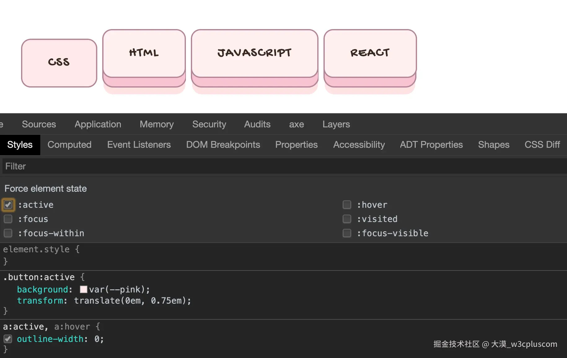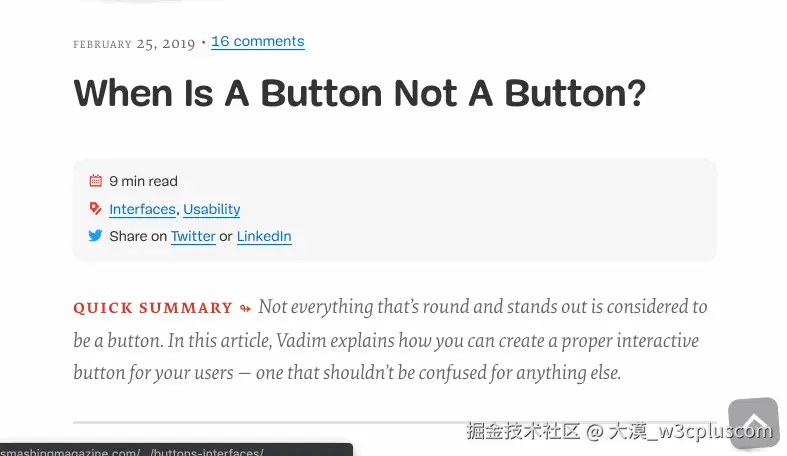 对于CSS怎么给<a>或<button>添加样式,这里就不再做更多的阐述,如果你感兴趣的话,可以阅读 @shadeed9 的《Styling The Good Ol' Button Element》一文。