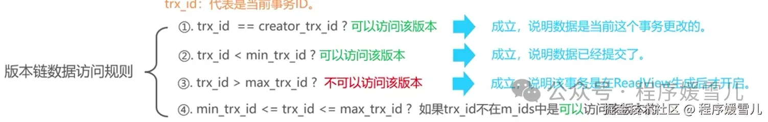trx_id代表的当前事务,在undo log日志当中,会依次遍历DB_TRX_ID,去找第一个符合的版本数据返回给用户