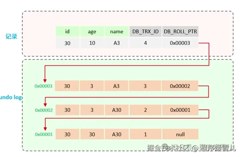 | DB_ROLL_PTR | 回滚指针,指向是这条记录的上个版本 |