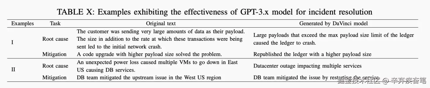 与以往的研究不同,本研究是首次利用最先进的语言模型来协助运维工程师解决事件。我们希望这项工作也能促进未来的工作,将传统的任务特定的判别模型与LLMs合并,实现对生产事件的端到端自动化处理。