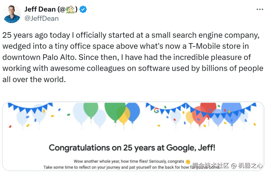 谷歌首席科学家 Jeff Dean 迎来了他在这家科技巨头的第 25 个年头。