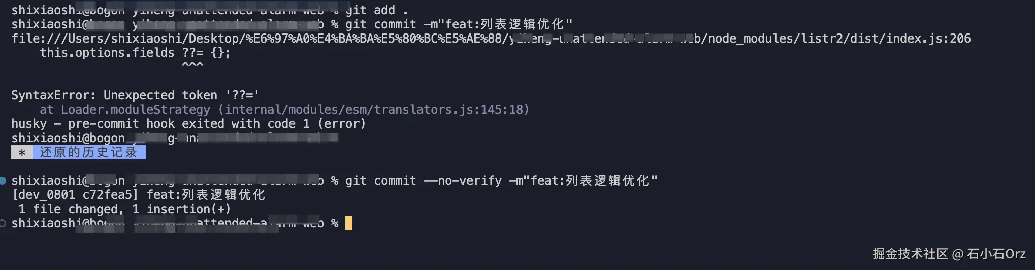 git commit -m "嘿嘿,我要跳过检查" --no-verify