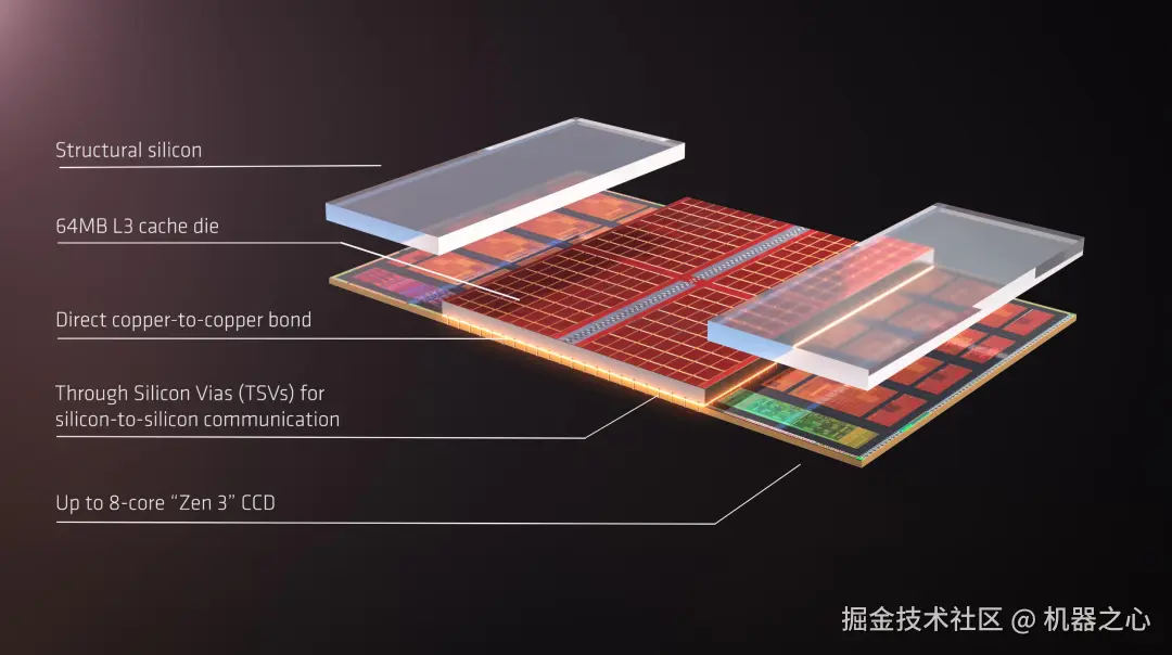 「在设备可用之后,将晶圆与晶圆对齐比将芯片与晶圆对齐更容易。大多数微电子工艺都是针对整片晶圆进行的,」法国研究机构 CEA Leti 集成与封装科学负责人 Jean-Charles Souriau 说道。但芯片对晶圆(或芯片到晶圆)技术在高端处理器中可以大放异彩,例如 AMD 的处理器,他们把新技术用于组装其先进 CPU 和 AI 加速器中的计算核心和缓存。