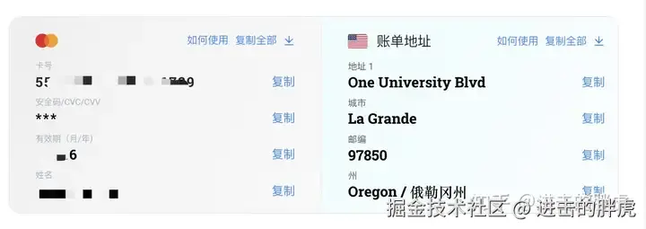 下面只需要将上面卡片基本信息填到订阅绑卡所需要的信息中即可!