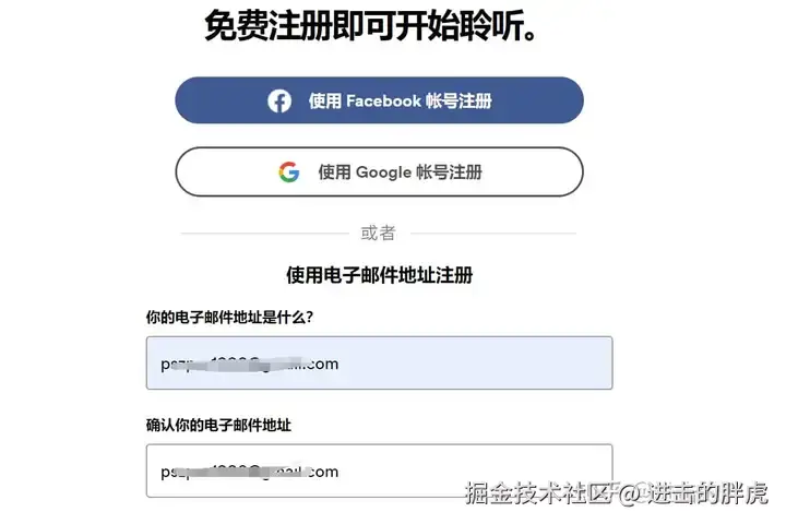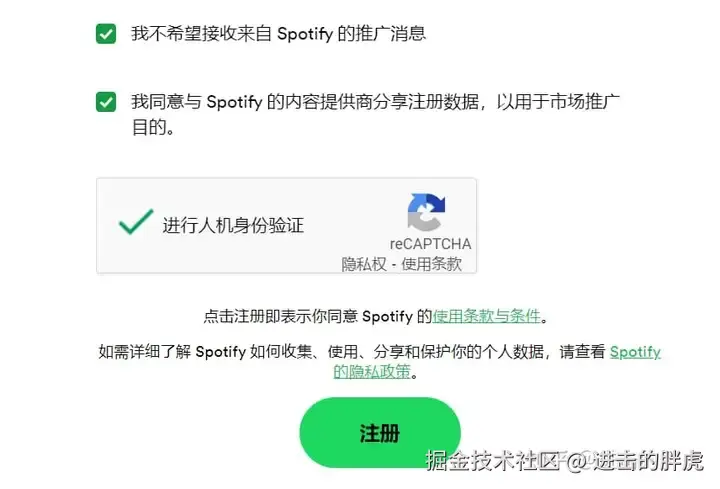 如果你是新用户,还没有 Spotify 账号,那么选择页面下方的注册 SPOTIFY,接着就会跳转到注册界面。