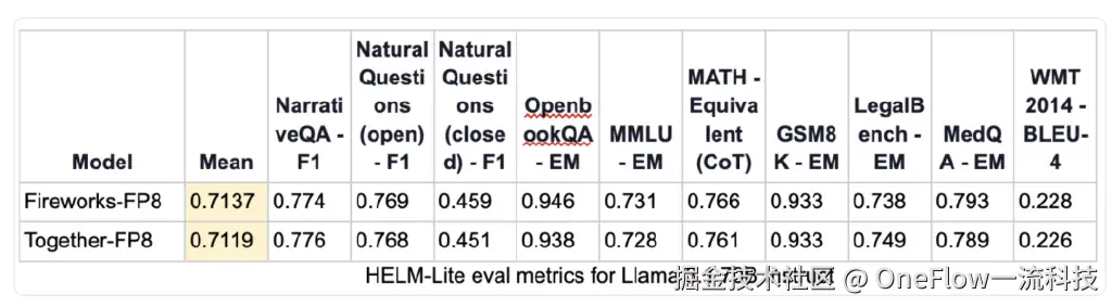 - 其他评估方法——Fireworks通过散度指标和任务指标来细致地评估模型,以确保质量与参考模型(reference model)匹配。然而,作者并不建议使用基于任务的方法来衡量量化质量,因为高噪声会限制精度。
