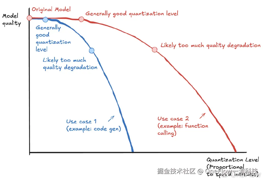 通常,随着量化激进程度的增加,性能会提高,但质量会下降。然而,在只对质量产生微小影响的情况下,获得显著的性能提升,也是有可能的。质量与性能之间的权衡取决于以下因素: