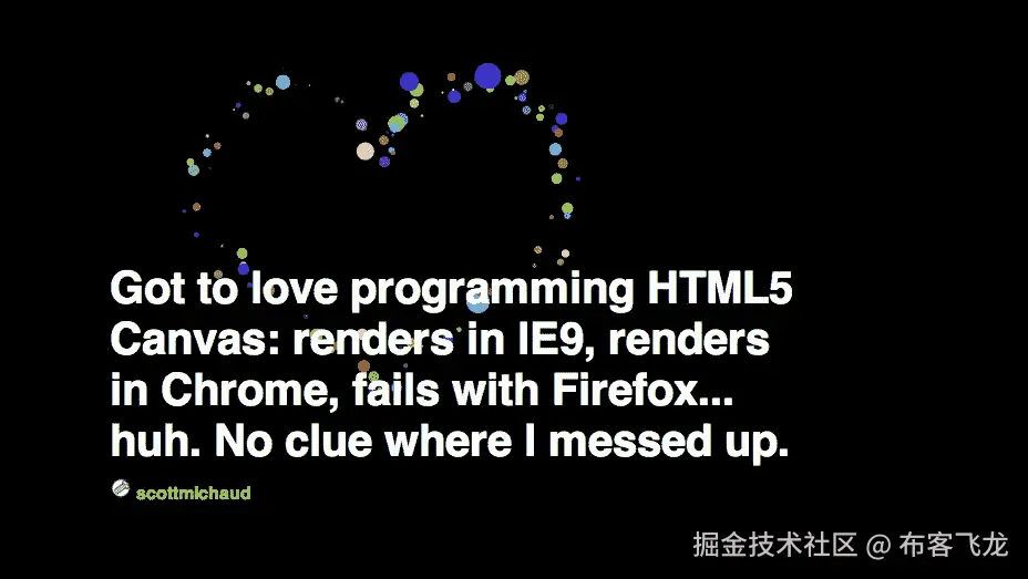 我们也要小心对一项技术的判断太快。Canvas 目前正在经历尴尬的青春期——充满了潜在的、令人尴尬的错误、实验、单音节的咕哝,最后(希望如此!)成熟。每当新技术进入网络领域,它通常会以一系列实验性或不适当的方式作为噱头展示,然后才进入它的凹槽并被适度和适当地使用。希望画布很快找到它的凹槽。