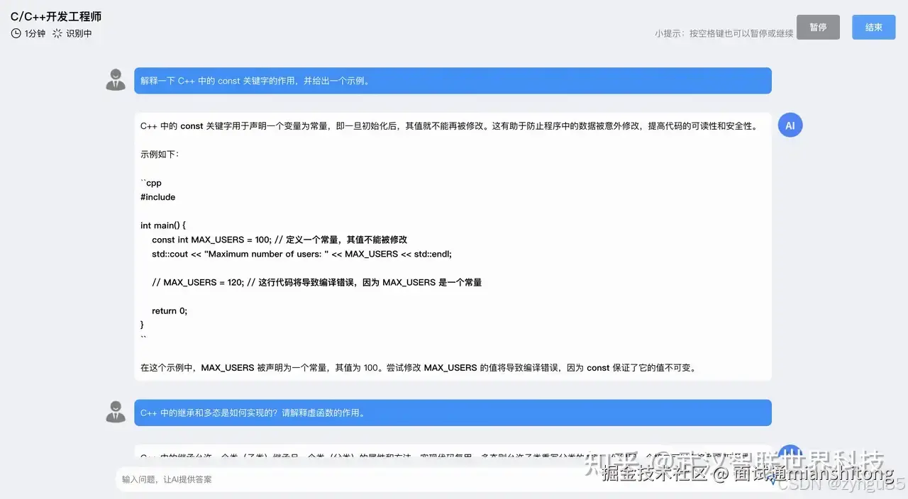 提示:我们已经用了目前最先进的大模型技术,但AI本身更擅长结构化面试、八股文、力扣题等等,不适用于过于艰难晦涩的问题,请同学们试用以后觉得有用再购买