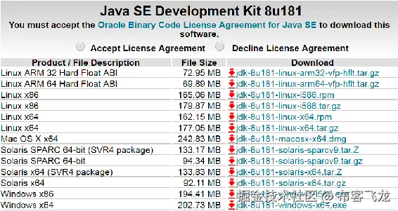 现在,您必须再次接受协议,并根据您的系统要求下载 JDK。