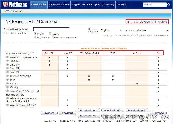 如上图所示,8.2 是 NetBeans 的最新版本。NetBeans 的后续版本有所变化,但我们将使用 8.2 版本。如果你愿意,可以下载旧版本。例如,7.1 和 7.0.1 这样的版本以不同的方式工作,但可以用于较旧的 Java 代码。
