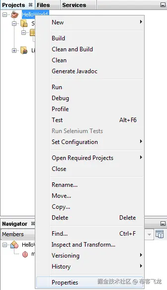 - 在 NetBeans 上创建一个新项目,例如 HelloWorld。