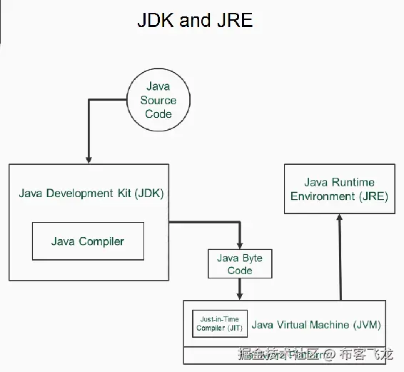 由于我们将用 Java 编码,我们将需要 Java 开发工具包 ( JDK )。JDK 是一个由编译器和解释器组成的环境。编译器用于将高级语言编写的源代码转换为中间形式,即字节码。这意味着 JDK 编译整个代码并将其转换成字节码。一旦你有了字节码,你就需要一个 Java 解释器,这就是所谓的 Java 运行时环境 ( JRE )。JRE 只为您提供 Java 解释器。如果您有一个 JRE 和字节代码,您可以在您的系统上运行它,如下图所示: