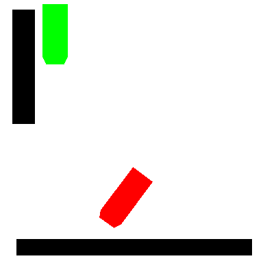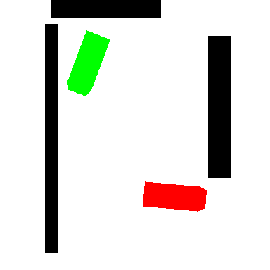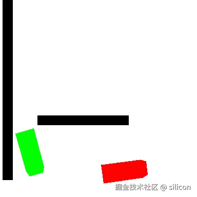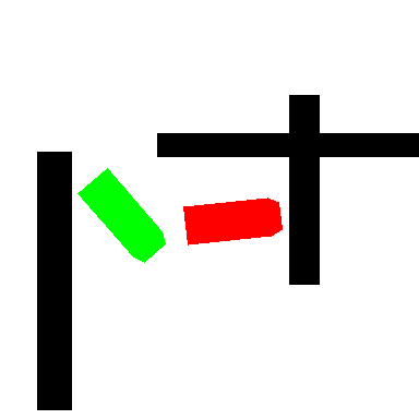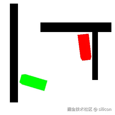 上图中,黑色为障碍物位置,红色为小车当前位置,绿色为小车目标位置