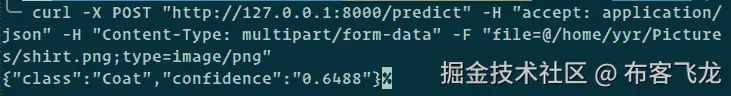 POST请求,EC2 实例将对其做出响应,预测我们上传的服装图像的类型: