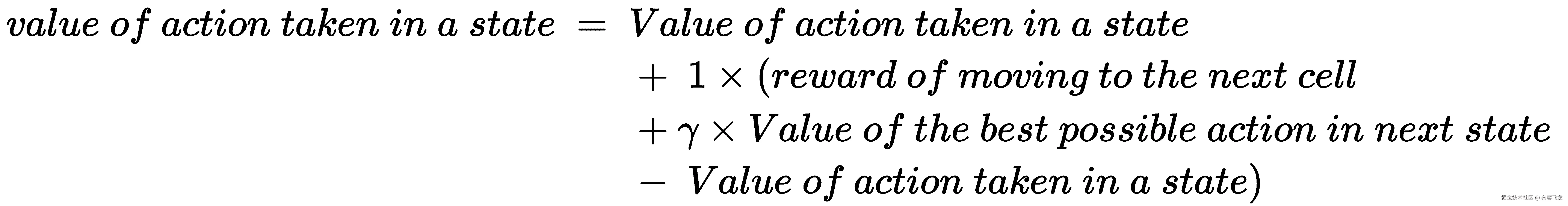 在前面的等式中,我们用学习率代替 1,这样我们就可以更加渐进地更新在某个状态下采取的动作的值: