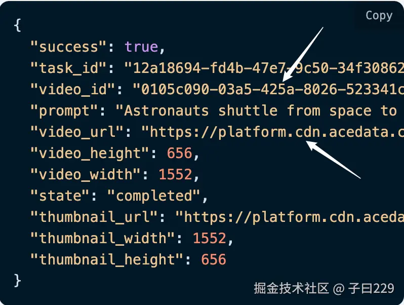 completed。 - thumbnail_url:生成后的视频封面图片的链接