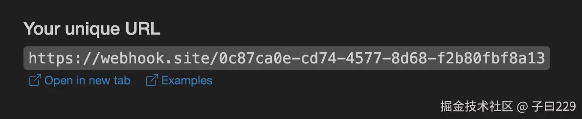 将此 URL 复制下来,就可以作为 Webhook 来使用,此处的样例为 webhook.site/0c87ca0e-cd…