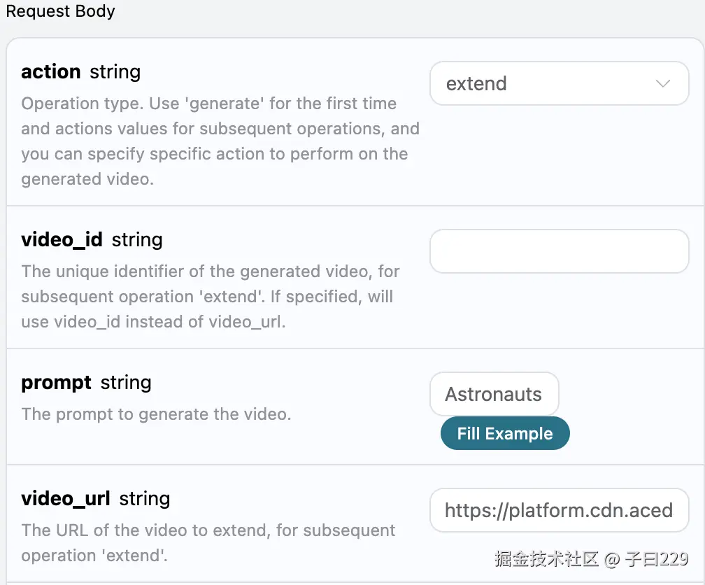 - video_id:需要扩展生成视频的唯一ID。