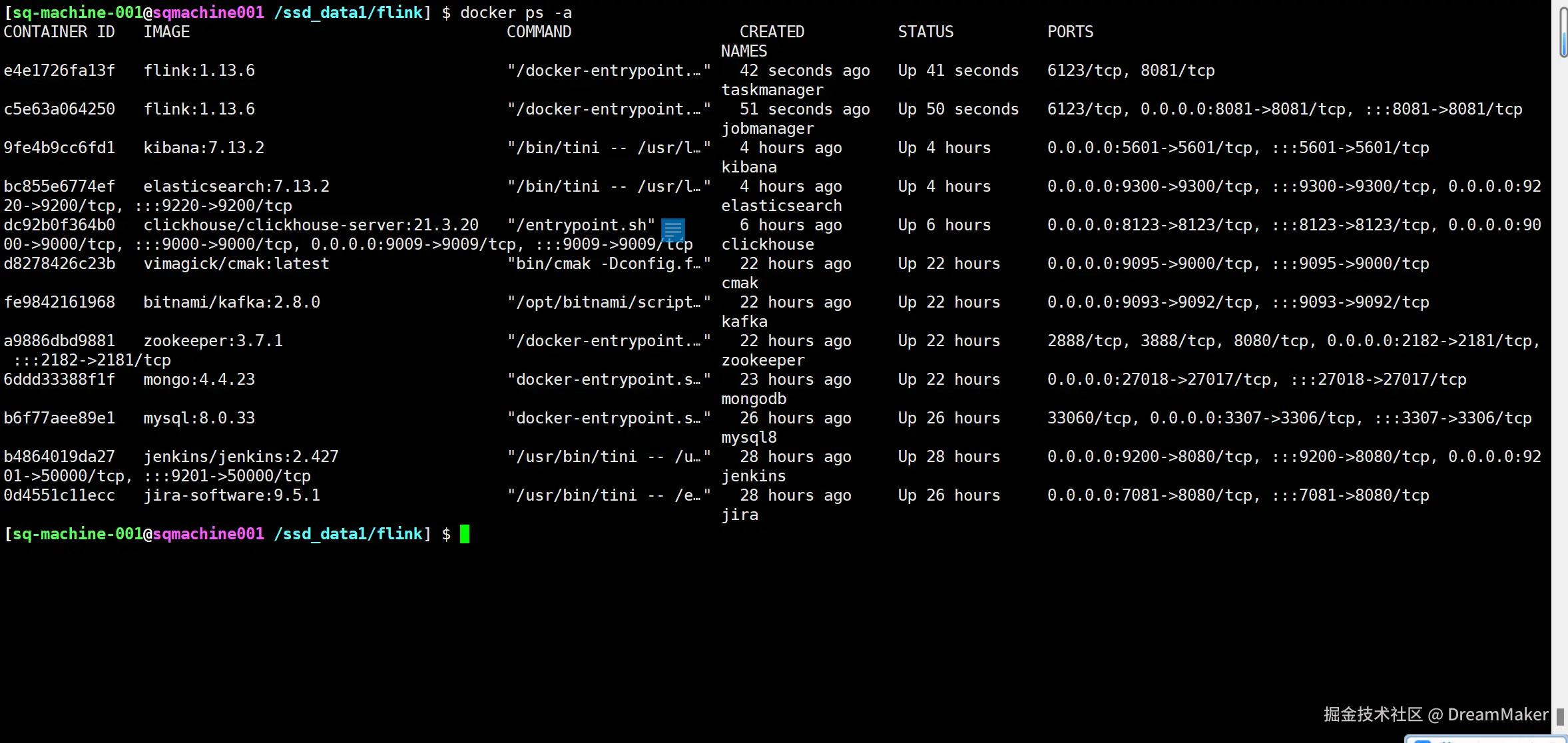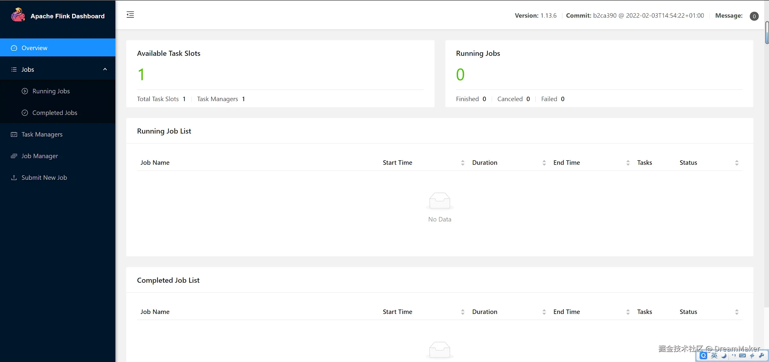 如下两个容器启动成功,可以看到 web 端口为 8081,taskmanager 启动一个