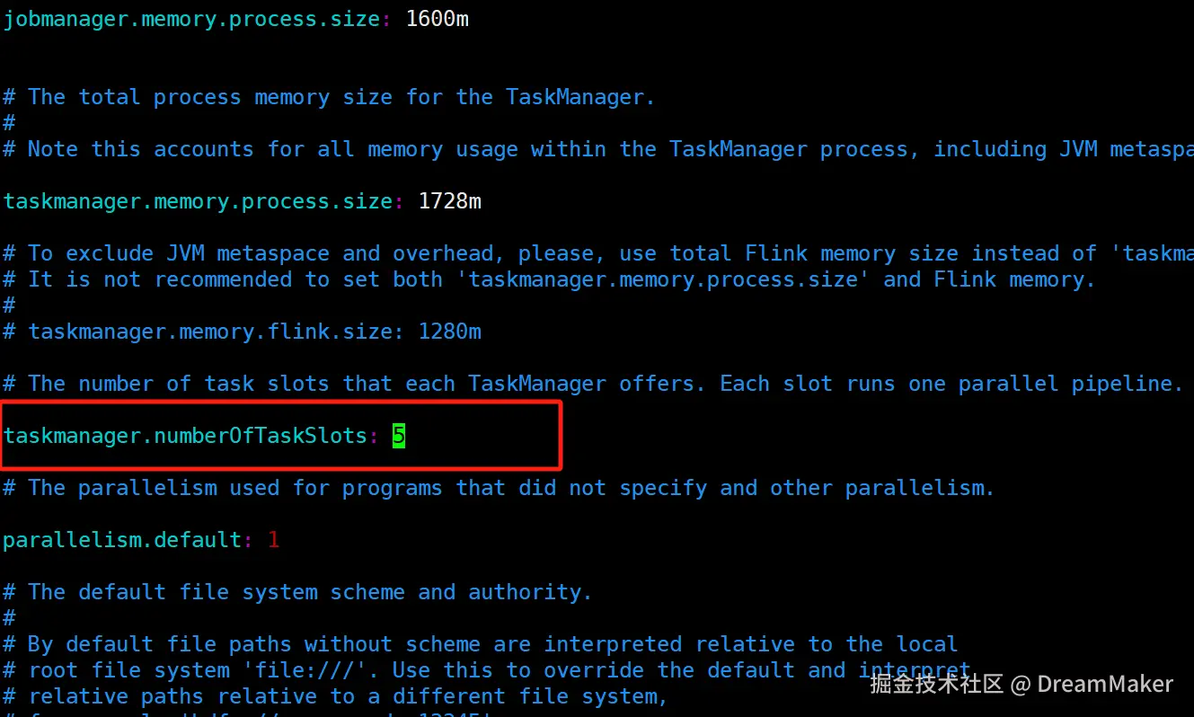 修改 TaskManager/conf/flink-conf.yaml 容器任务槽为 5(有问题,配置挂载后自动变更为1)