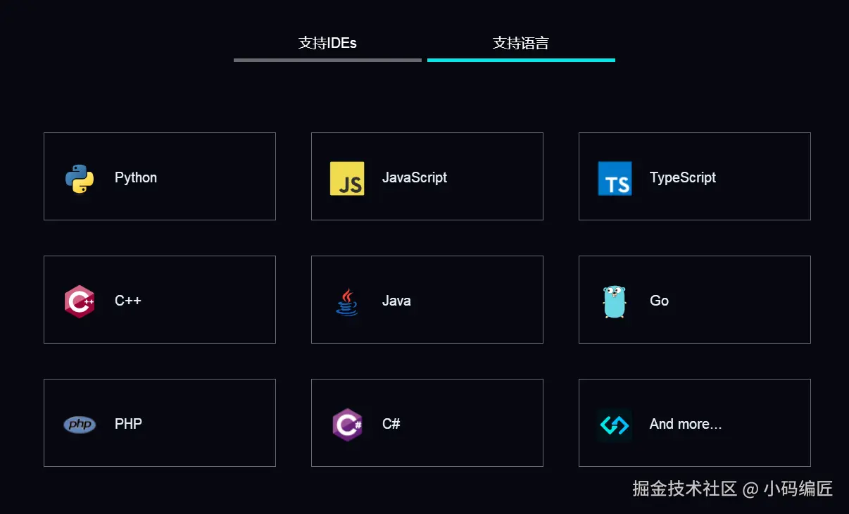 CodeGeeX支持的常见语言/框架