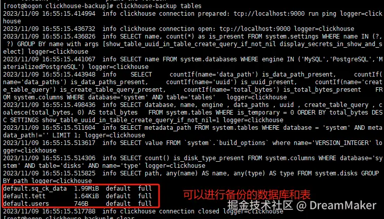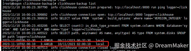 [root@bogon clickhouse-backup]# clickhouse-backup list