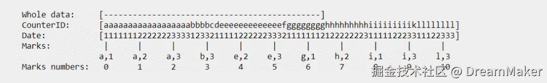 因此,每一行mrk2文件共占用24 Bytes。所以通过primary.idx中的索引寻找mrk2文件中对应的Mark非常简单,如果要寻找第n(从0开始)个index,则对应的Mark在mrk2文件中的偏移为n*24,从这个偏移处开始读取24 Bytes即可得到相应的Mark。