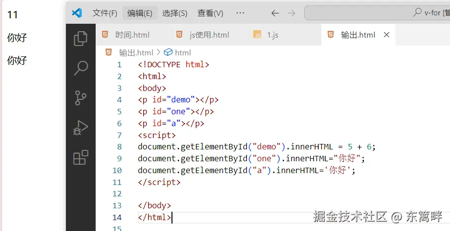 id 属性定义 HTML 元素。innerHTML 属性定义 HTML 内容: