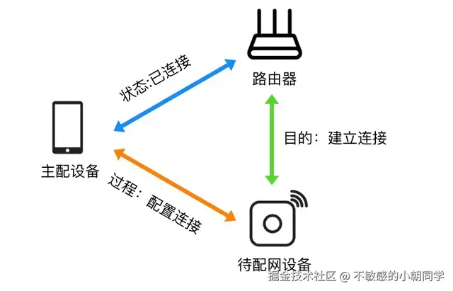 SoftAP方式配网时,设备处于 AP 模式,手机直连设备,传送目标路由器参数,不考虑终端兼容性(2.4G 或 5GWiFi)问题,配网成功率100%