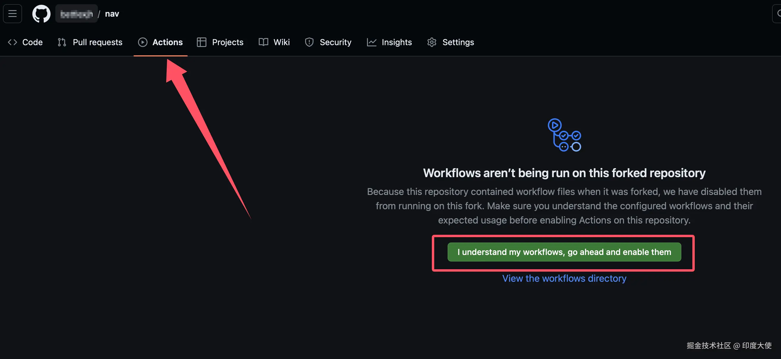 1、打开 github.com/xjh22222228… 点击右上角Fork到自己仓库