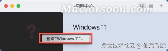 右键单击程序坞中的Parallels Desktop图标,选择删除Windows11,如图: