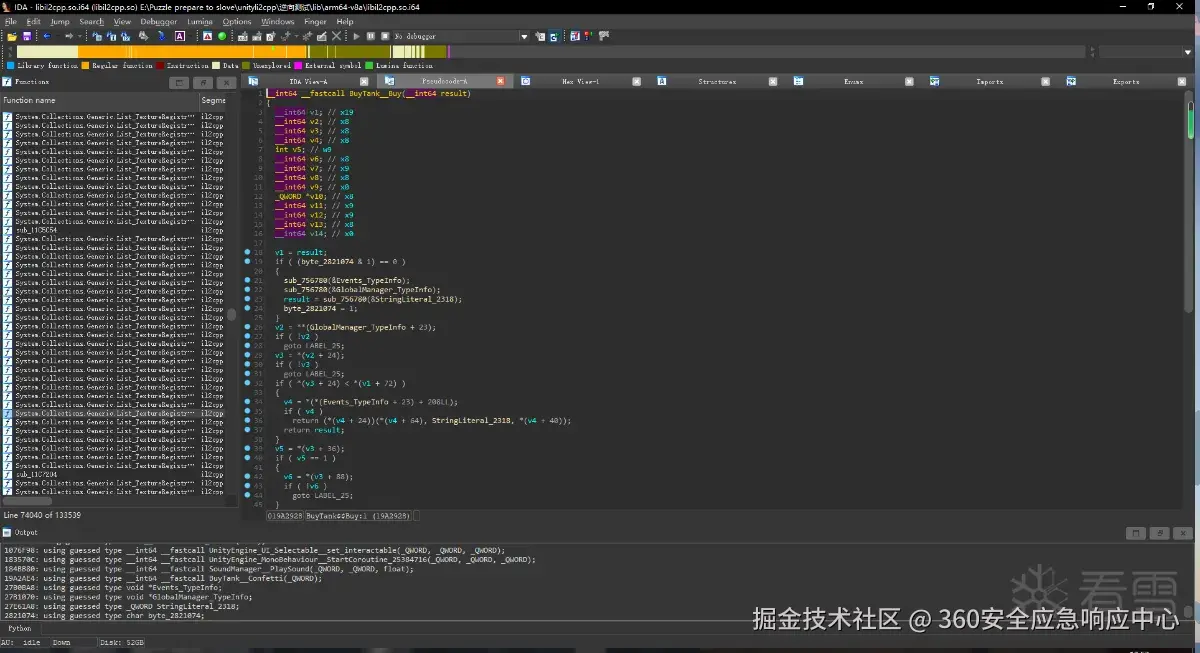 既然如此,我们则可以通过解析global-metadata.dat的信息来获取函数指针,并且通过偏移去查找libil2cpp中的游戏逻辑,当然仅凭这些,我们无法得知具体的字符串的,还需要利用到ilbil2cpp.so进行寻址的操作。