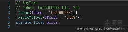 对于Buy逻辑,price肯定是一个重要的变量,那么我们就可以在Dnspy中查找到他的偏移地址。