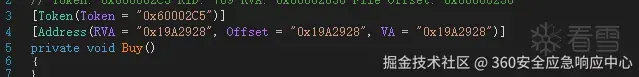 恢复符号表后我们可以直接在IDA中搜索Buy,或者使用Dnspy提供的便宜寻找,这里我们已经知道偏移是0x19a2928,使用IDA 的G键跳转过去即可。